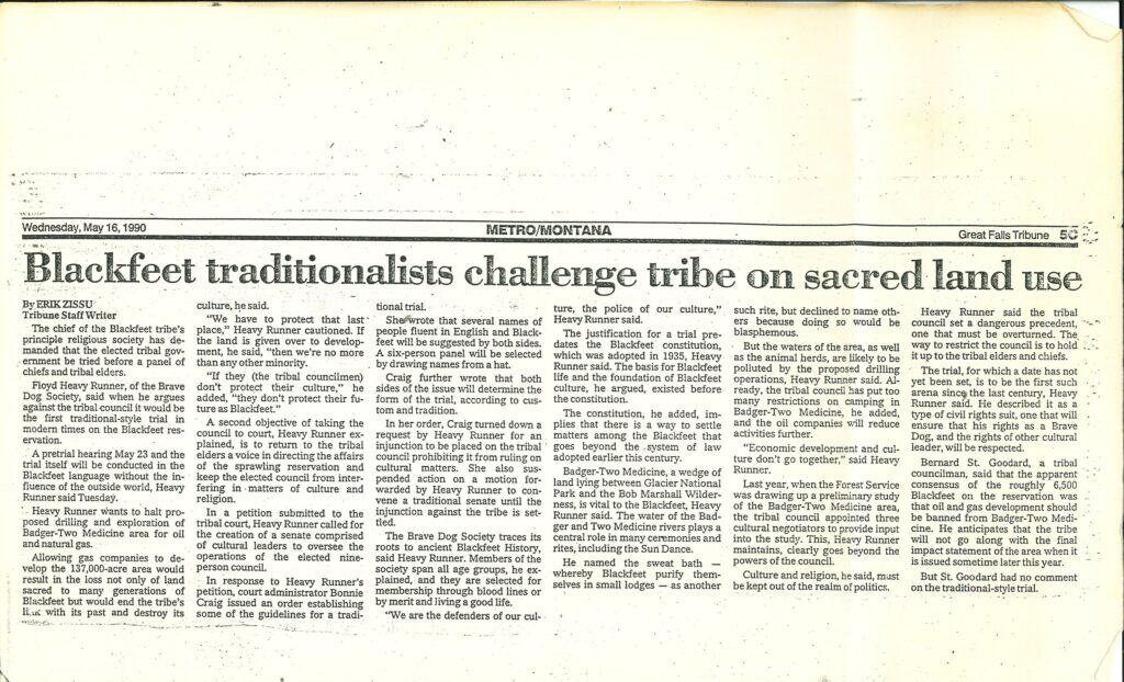 Blackfeet Traditionalists Challenge Tribe on Sacred Land Use – Metro Montana 1990