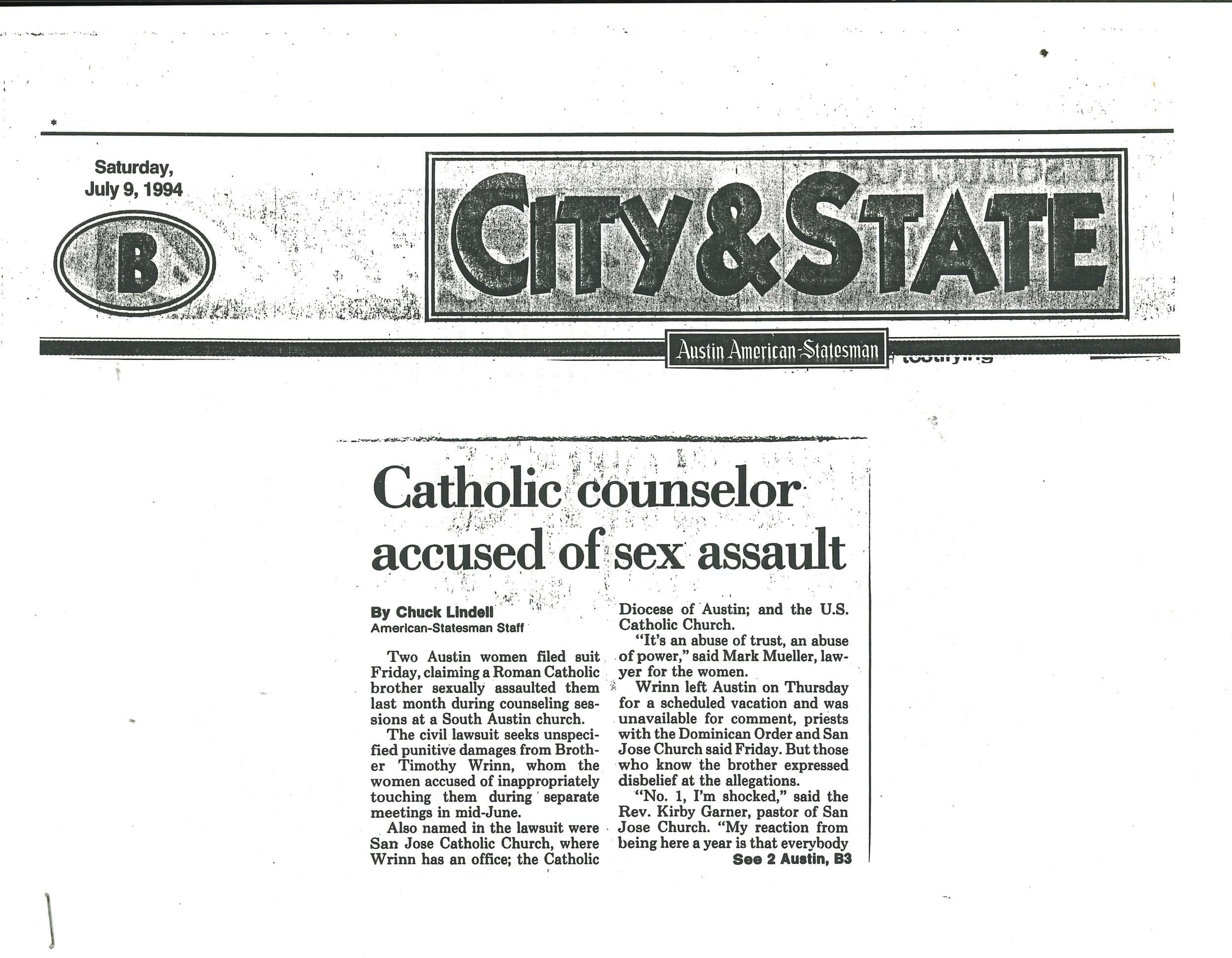 Catholic Counselor Accused of Sex Assault – Austin American Statesman 1994