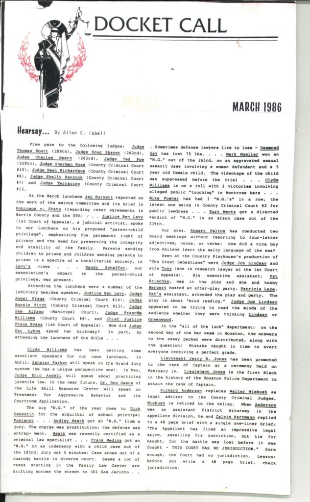 Docket Call Allen C. Isbell 1986